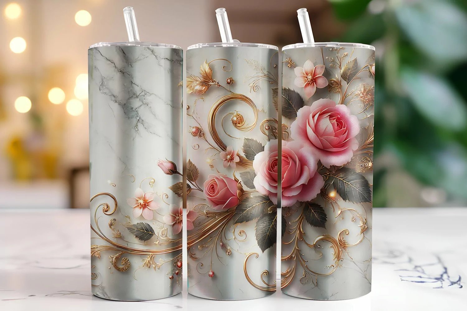 Flowers Valentine's Day Tumbler Wrap Sublimation example image 1