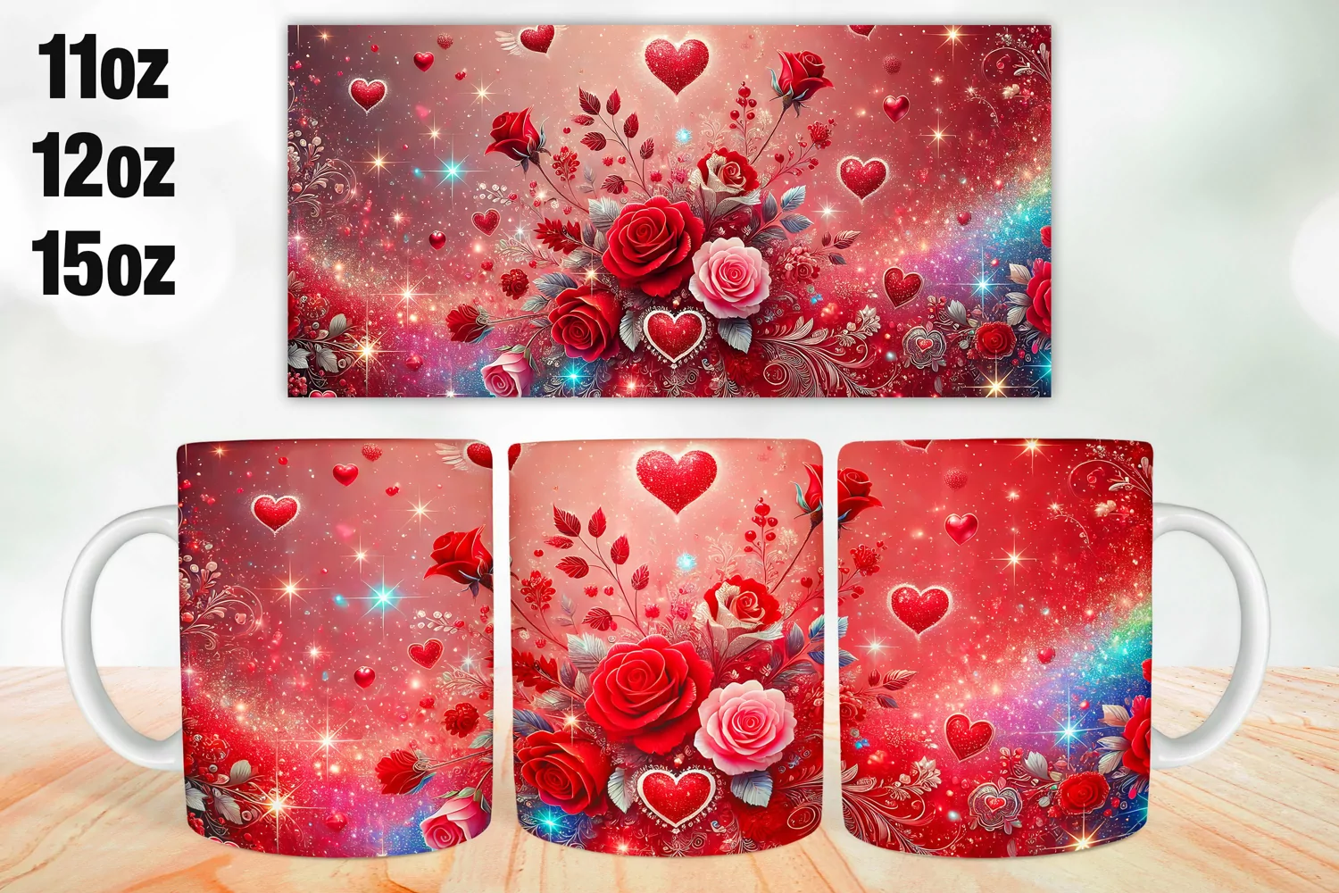 Flowers Valentine Day Mug Wrap Sublimation 11oz, 12oz, 15oz