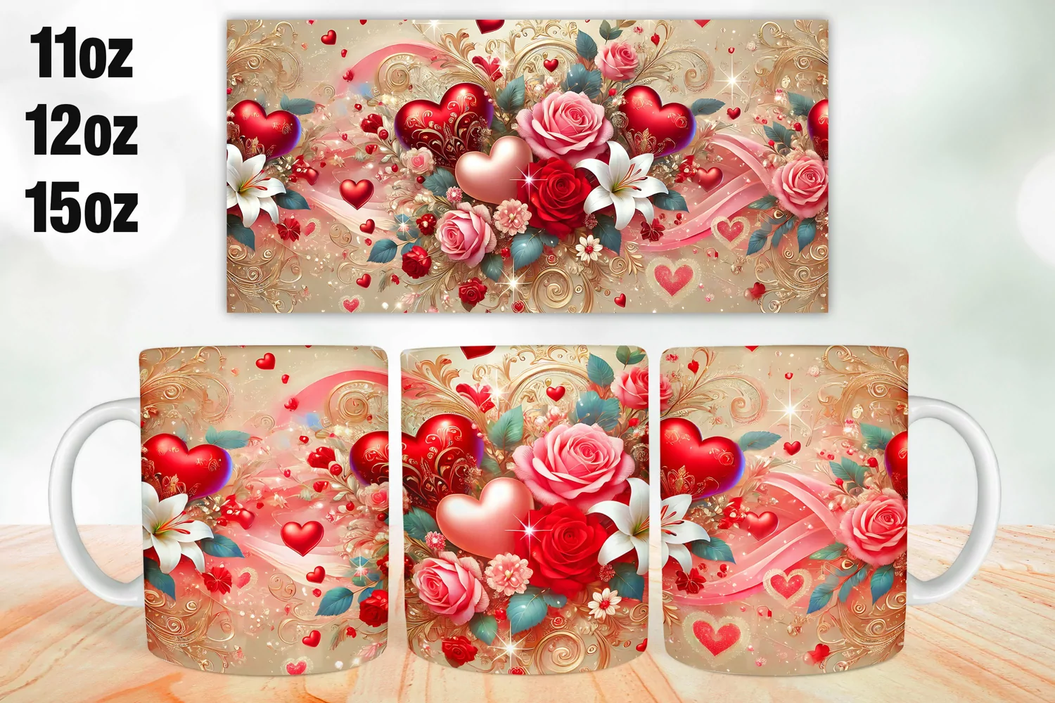 Flowers Valentine Day Mug Wrap Sublimation 11oz, 12oz, 15oz