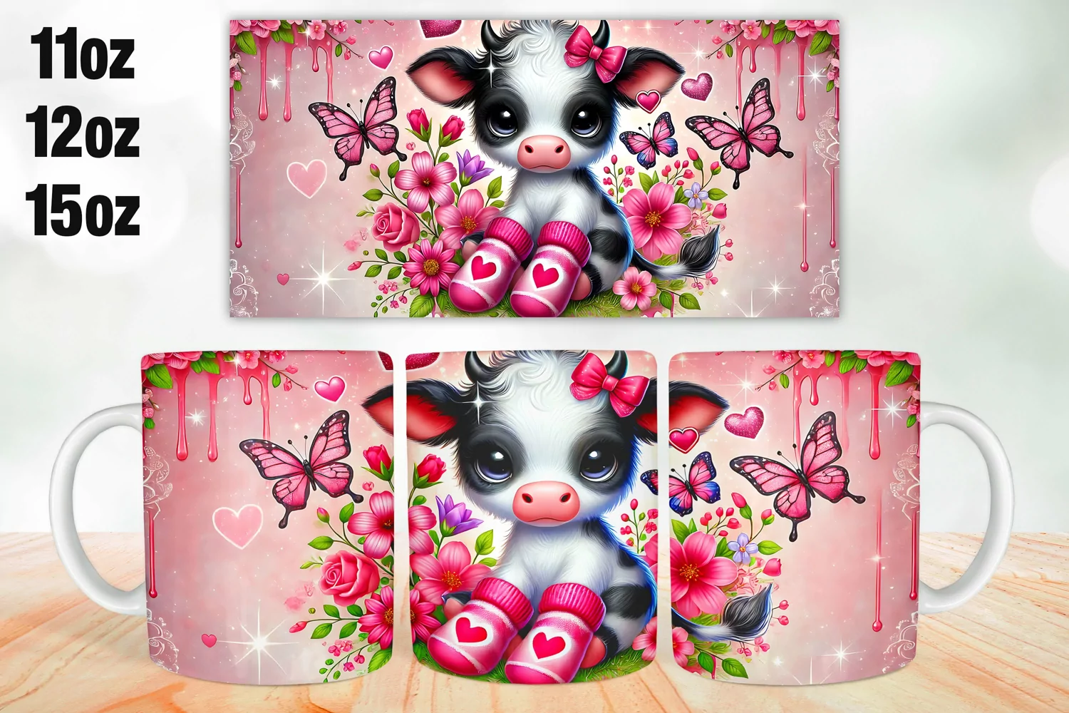 Cow Valentine Day Mug Wrap Sublimation 11oz, 12oz, 15oz
