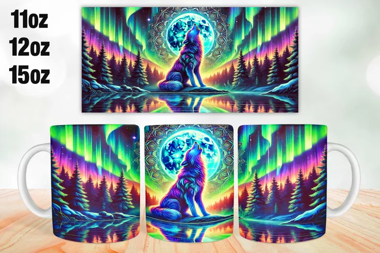 Wolf Mug Wrap Sublimation 11oz, 12oz, 15oz