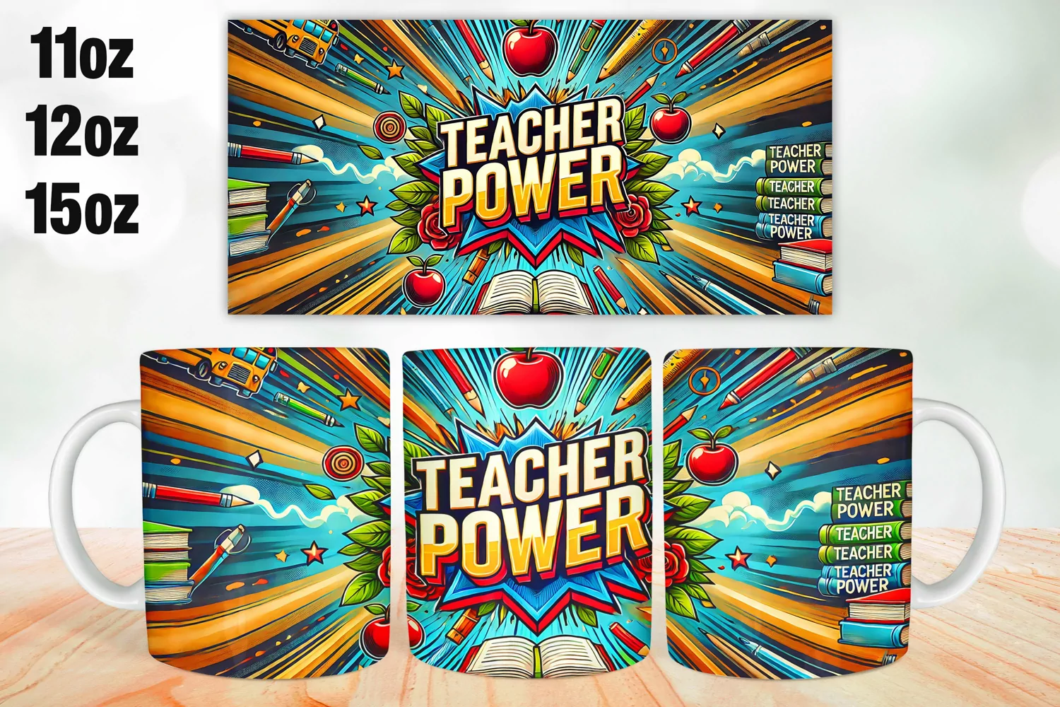 Teacher Power Mug Wrap Sublimation 11oz, 12oz, 15oz