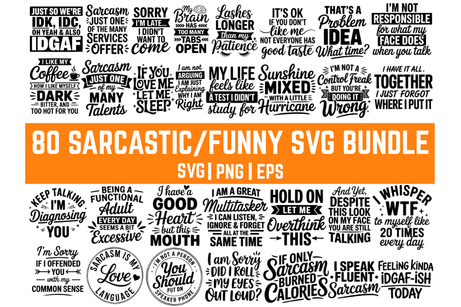80 Sarcastic SVG Bundle | Quotes | SVG Cut Files