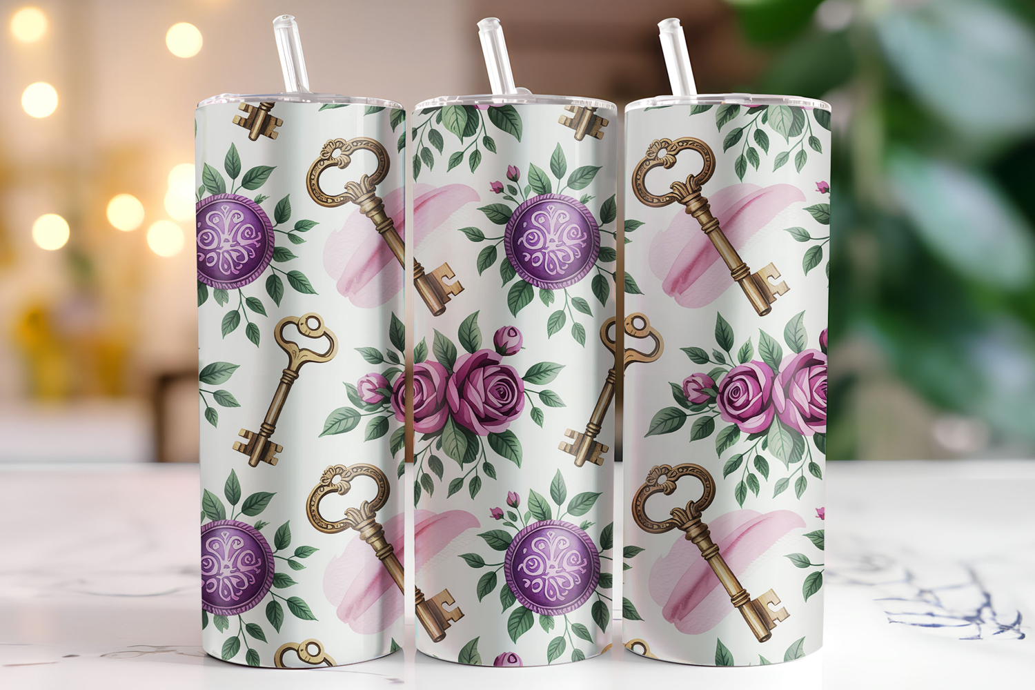 Flowers & Key Tumbler Wrap | Sublimation | Tumblers example image 1