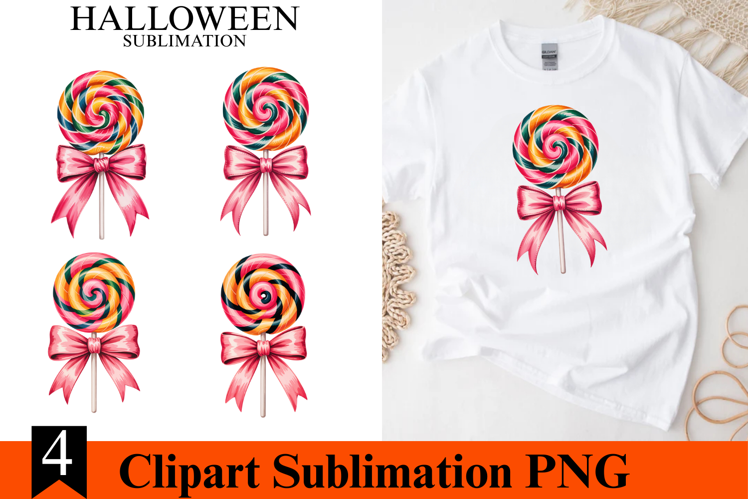 4 Halloween Lollipop Clipart PNG | Spooky Season