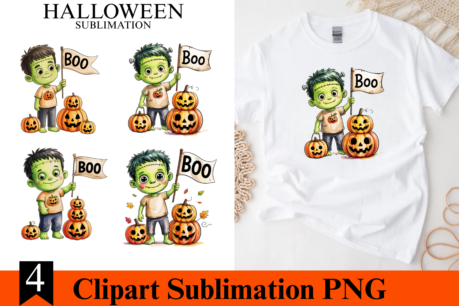 4 Halloween Frankensthein Clipart PNG | Spooky Season Png example image 1