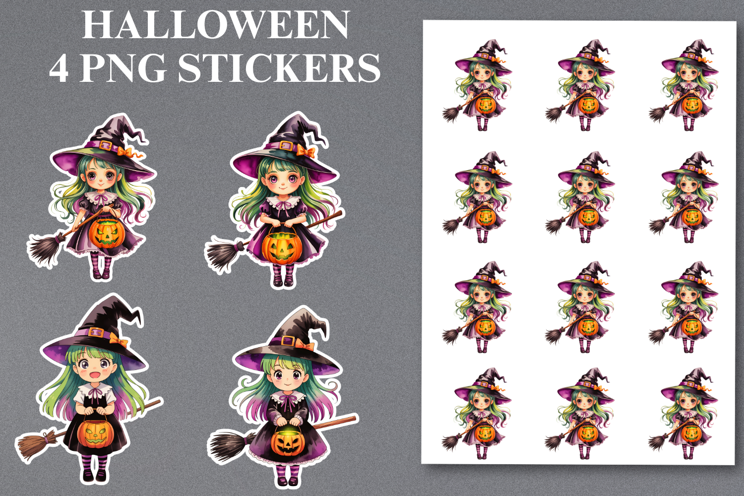 Halloween witch grirl Stickers Png | Printable example image 1