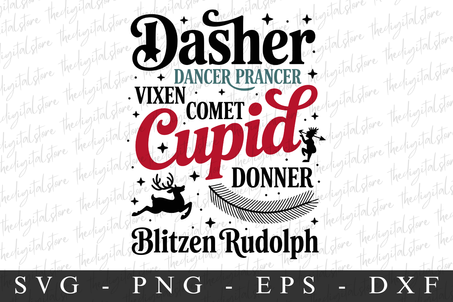 Dasher Dance Prancer Vixen Comet Cupid Svg | Christmas svg example image 1