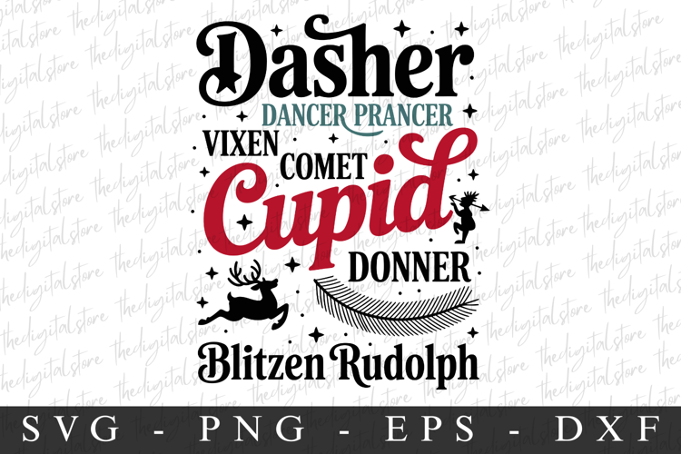 Dasher Dance Prancer Vixen Comet Cupid Svg | Christmas svg