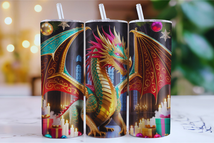 Merry Christmas Dragon Tumbler Wrap | Christmas Wrap