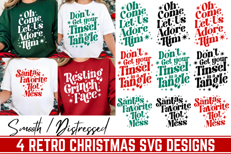 4 Retro Christmas Svg, Festive Holiday Quote, Merry & Bright