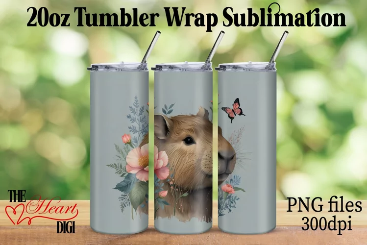 Capybara 20oz Tumbler PNG, Floral Capybara Tumbler PNG