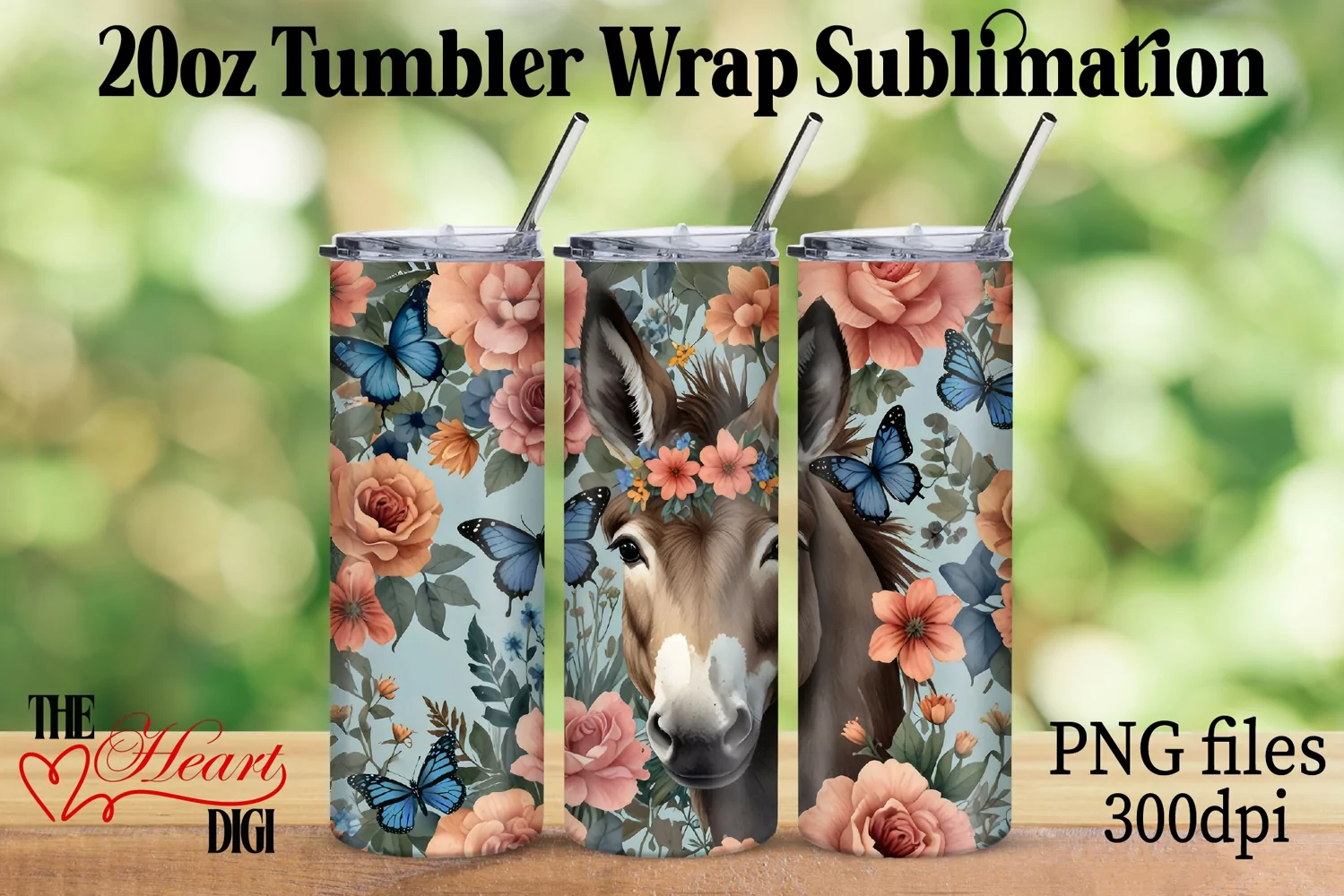 Flower Donkey 20oz Tumbler PNG, Cute Donkey Tumbler PNG example image 1