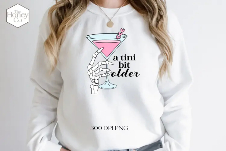 Funny Birthday Png Martini Sublimation White Toner Printing Spooky Birthday Design Tini Bit Older Illsutration Tini Bit Older Birthday Png Pink Martini Birthday Martini Birthday Design Over The Hill Martini Design Skeleton Birthday Png