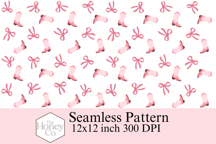 A fun and flirty seamless pattern with coquette cowboy boots and bows. Perfect for a Bachelorette party theme or Nashville girls trip. cute little flowers. Made for for apparel, fabric and accessories for all ages. Please note to use this pattern on a tumbler, you may need to alter the dimensions.