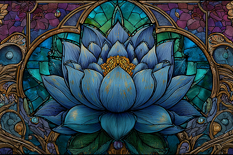 A beautiful blue lotus flower in stained glass art