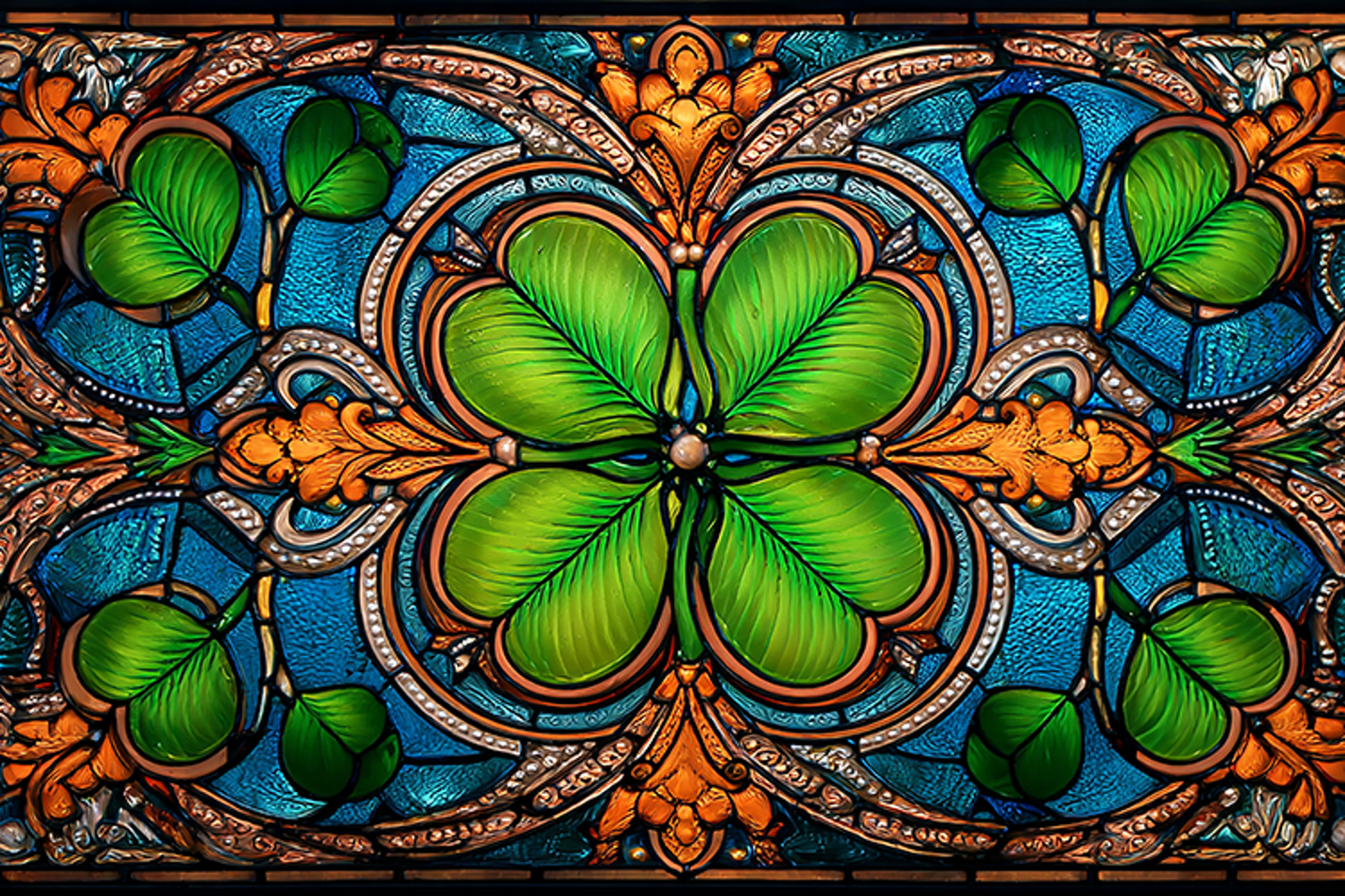 Similar Design Products to A vibrant stained glass featuring a large green clover