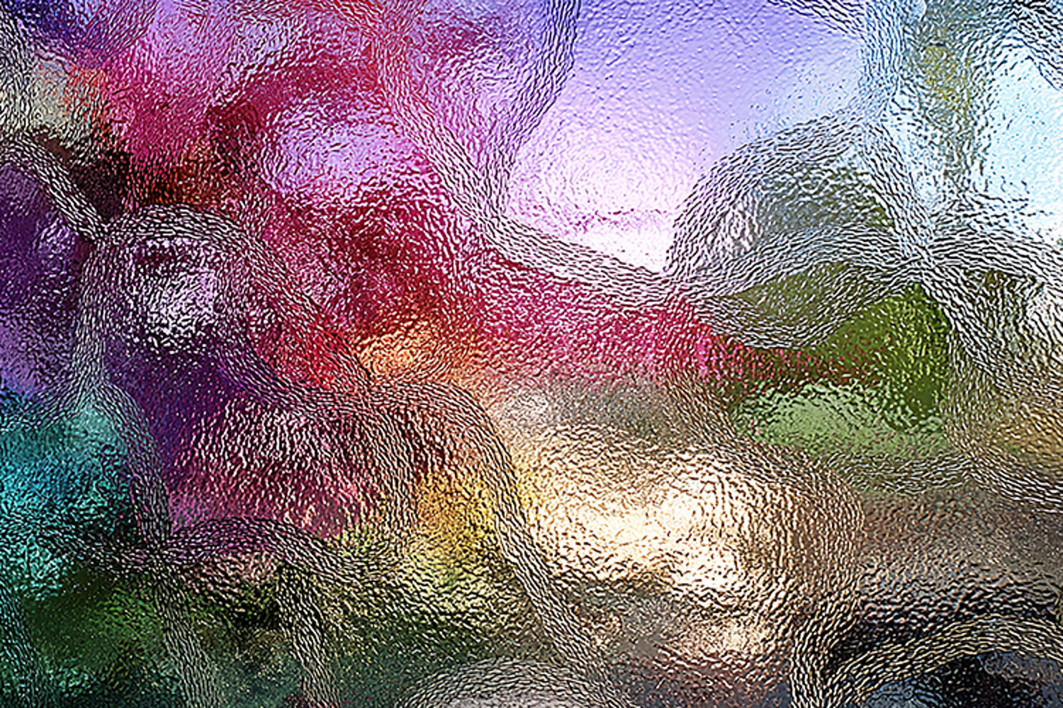 A vibrant and colorful abstract art piece featuring a mix of purple, pink, green, blue, and yellow hues. The artwork showcases a unique blend of colors and textures, creating a visually striking impression.