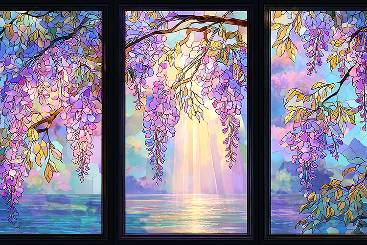Similar Design Products to A serene landscape of wisteria flowers by the ocean