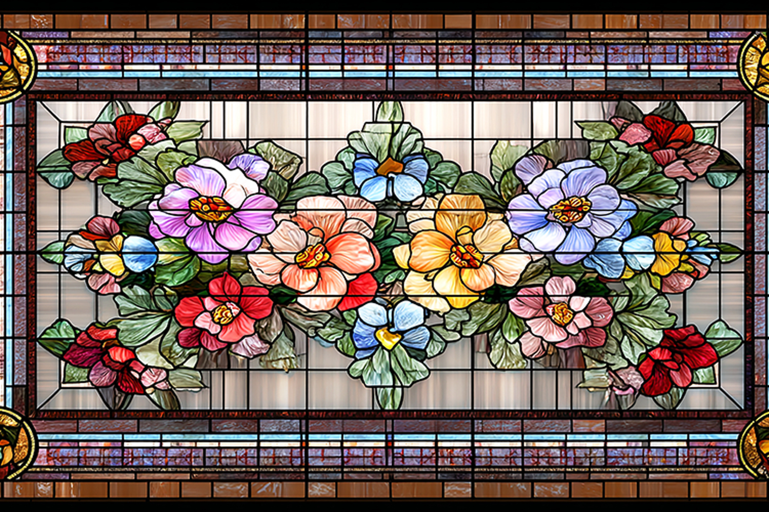 A beautiful stained glass window with colorful flowers
