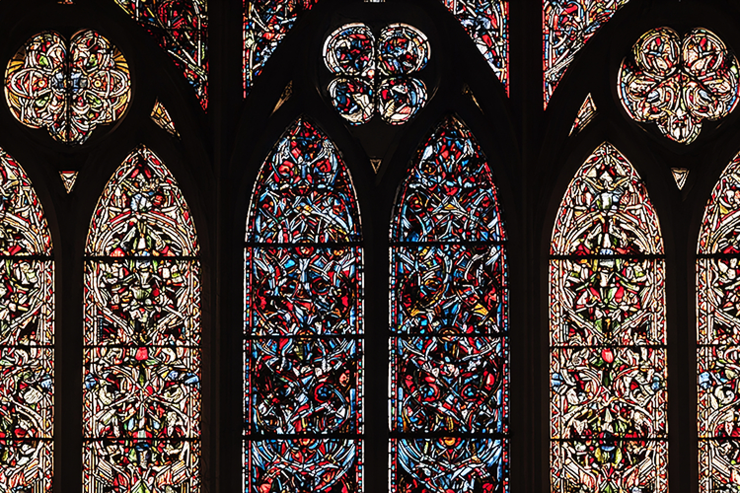 A stunning stained glass window in a historic Gothic church