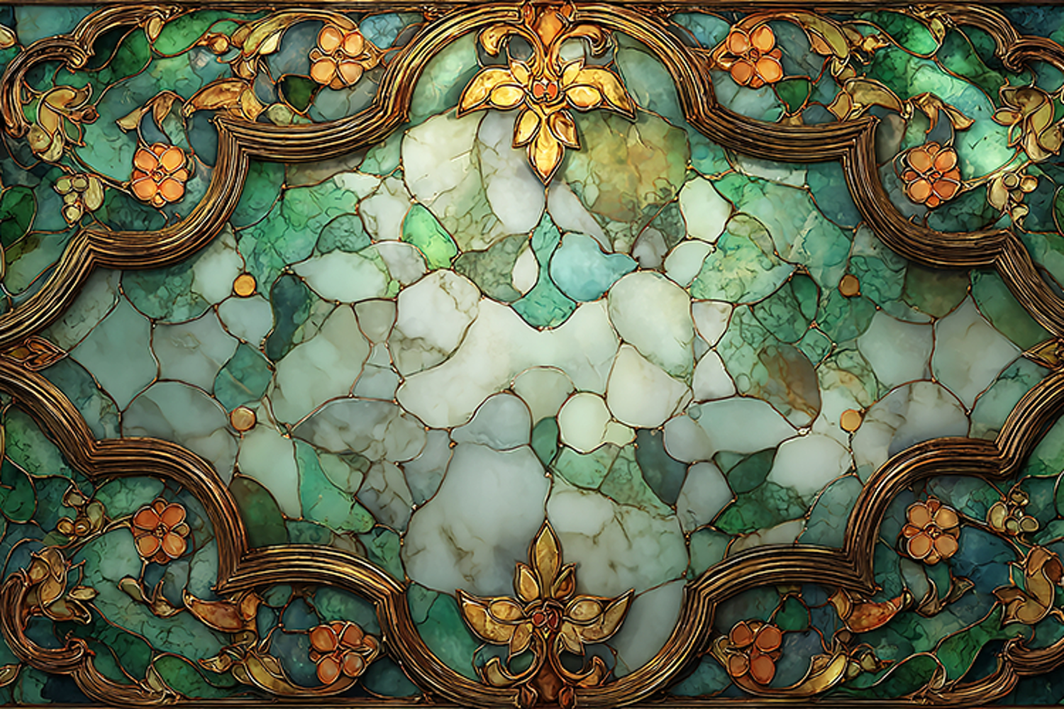 A beautiful mosaic artwork with floral patterns and gold example image 1