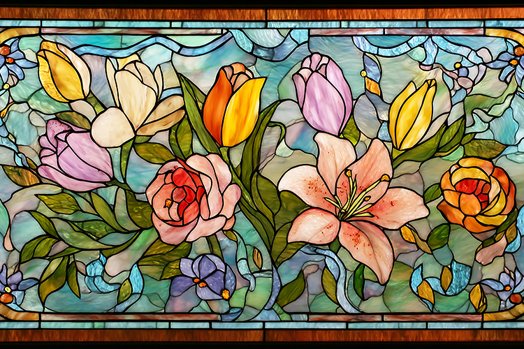 A beautiful stained glass window with colorful flowers