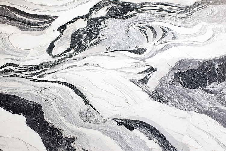 A close-up view of a marble surface with swirling black
