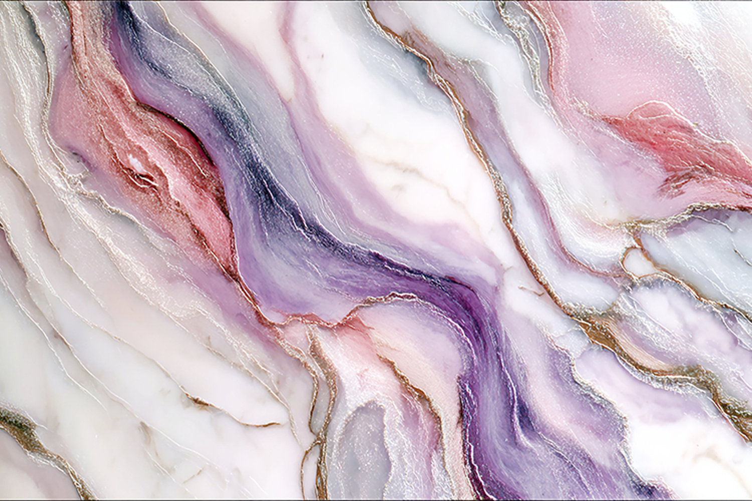 This image features a stunning abstract marble texture with swirling patterns of purple, pink, and white, accented with gold veins. The vibrant and artistic design creates a luxurious and elegant feel, perfect for use in creative projects or as a decorative element.