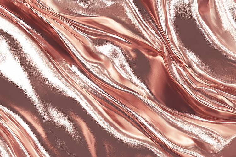 A luxurious rose gold fabric with smooth shiny folds