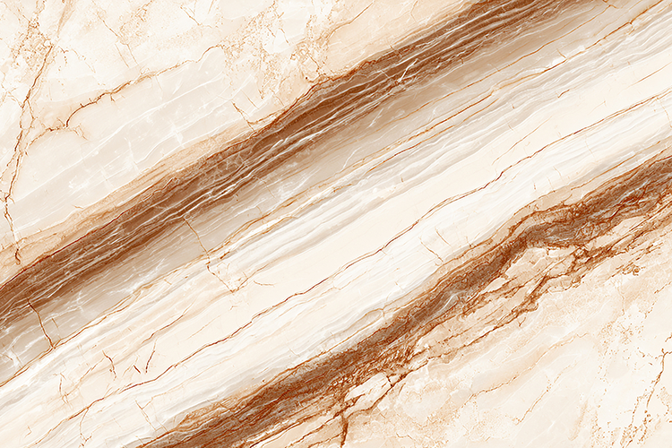 This image showcases a detailed view of a beige marble surface featuring intricate brown veins, highlighting its natural beauty and elegant texture.