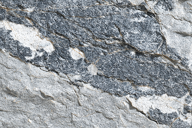 This image shows a close-up view of a rough textured rock surface with shades of gray and white, highlighting the natural patterns and geological details of the stone.