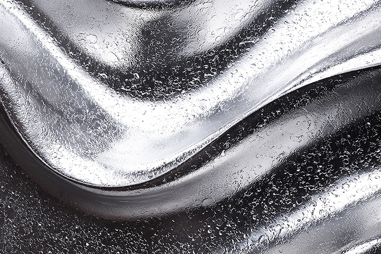 A shiny metallic surface with a wavy pattern