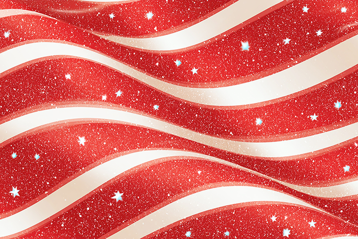 A vibrant and festive background featuring wavy red and white stripes with glittery sparkles and stars, perfect for celebrations, parties, and decorations.