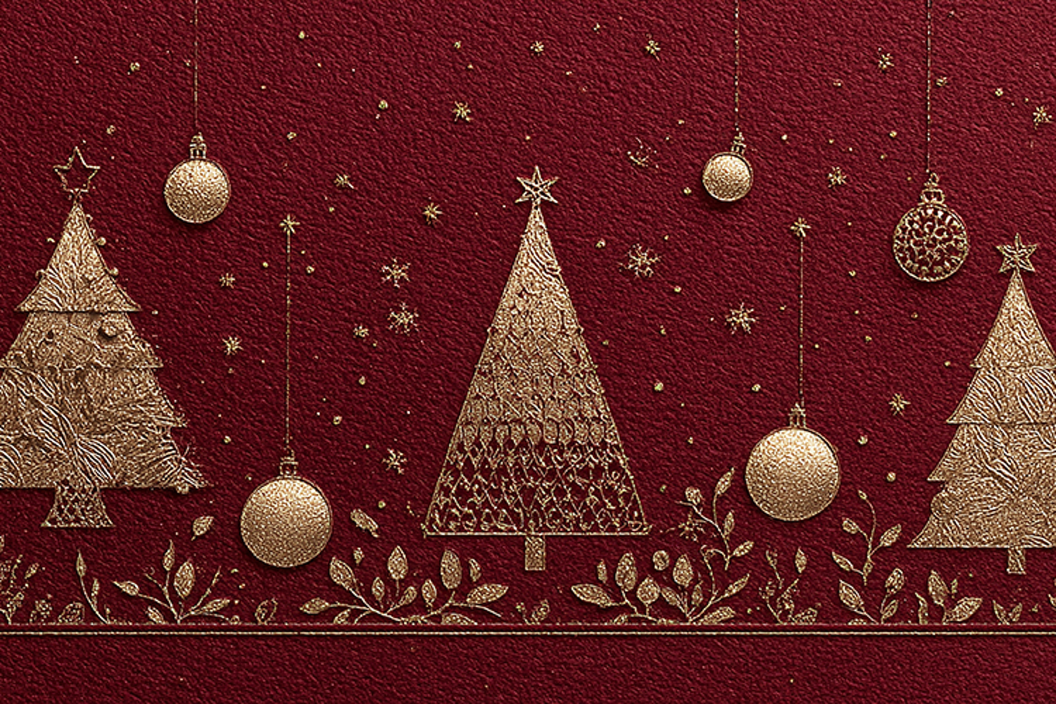 A luxurious Christmas background featuring gold ornaments and trees on a rich red backdrop, evoking a sense of festive elegance and sophistication.