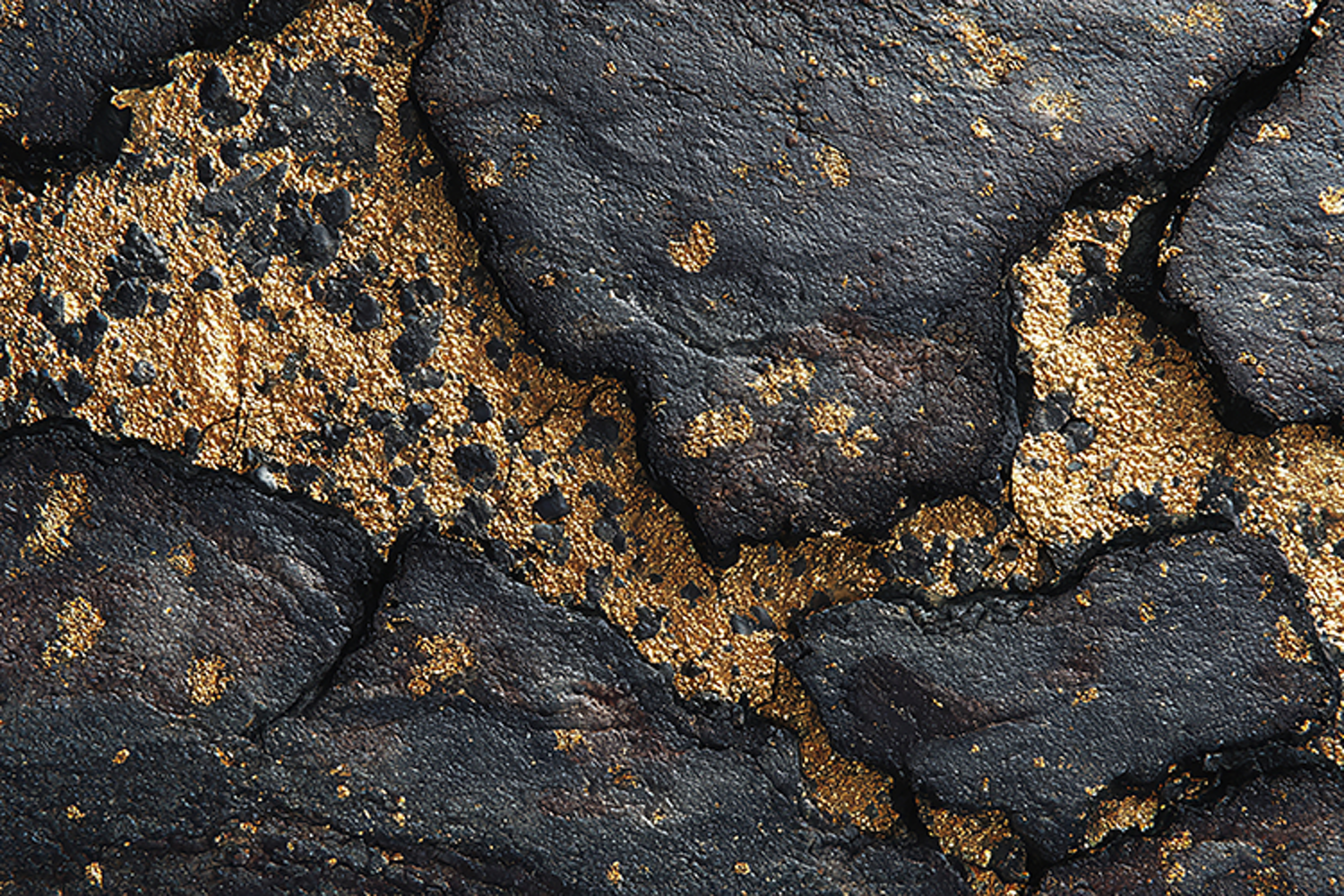 A rugged rocky surface with golden sand scattered throughout, showcasing the natural texture and earthy tones of the landscape.