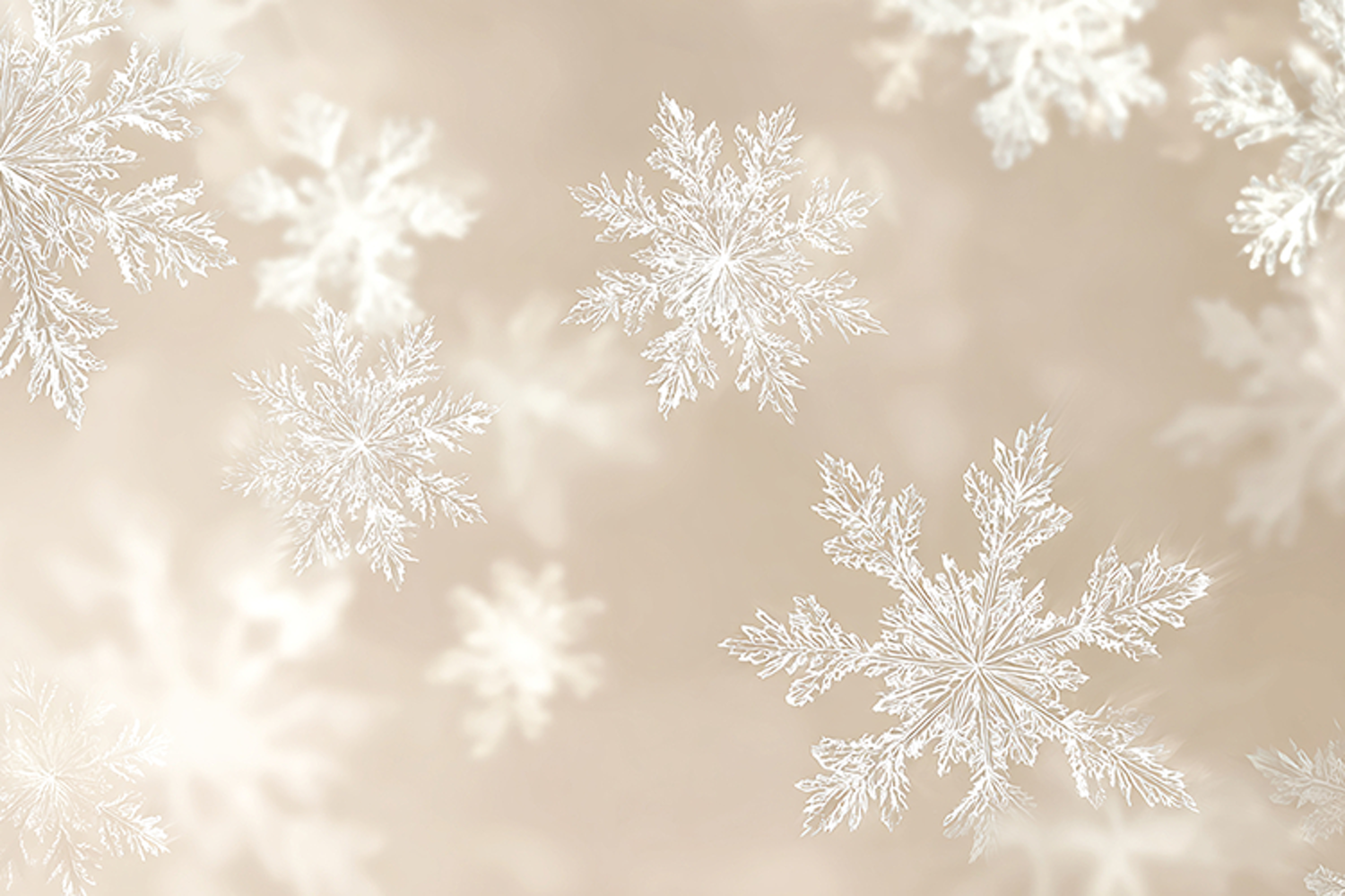 A delicate pattern of white snowflakes on a soft beige