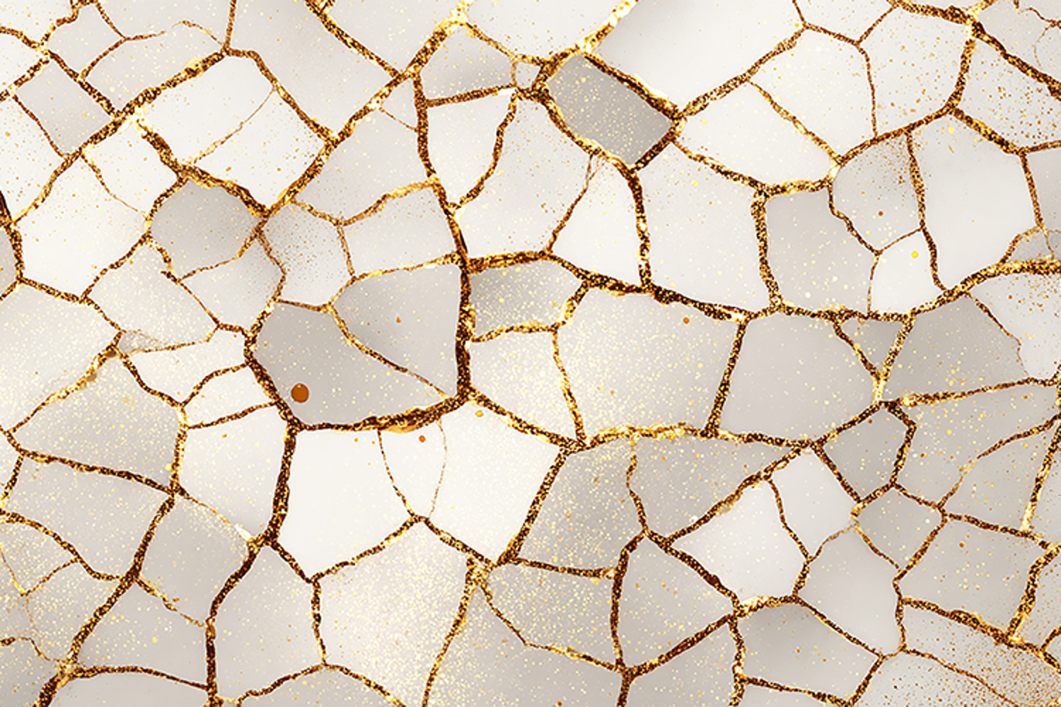 A cracked white surface with golden lines