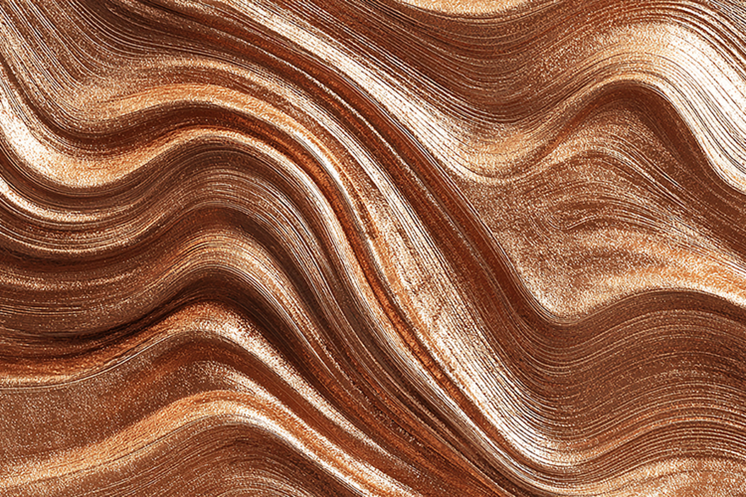 A wavy, metallic copper surface with asmooth texture