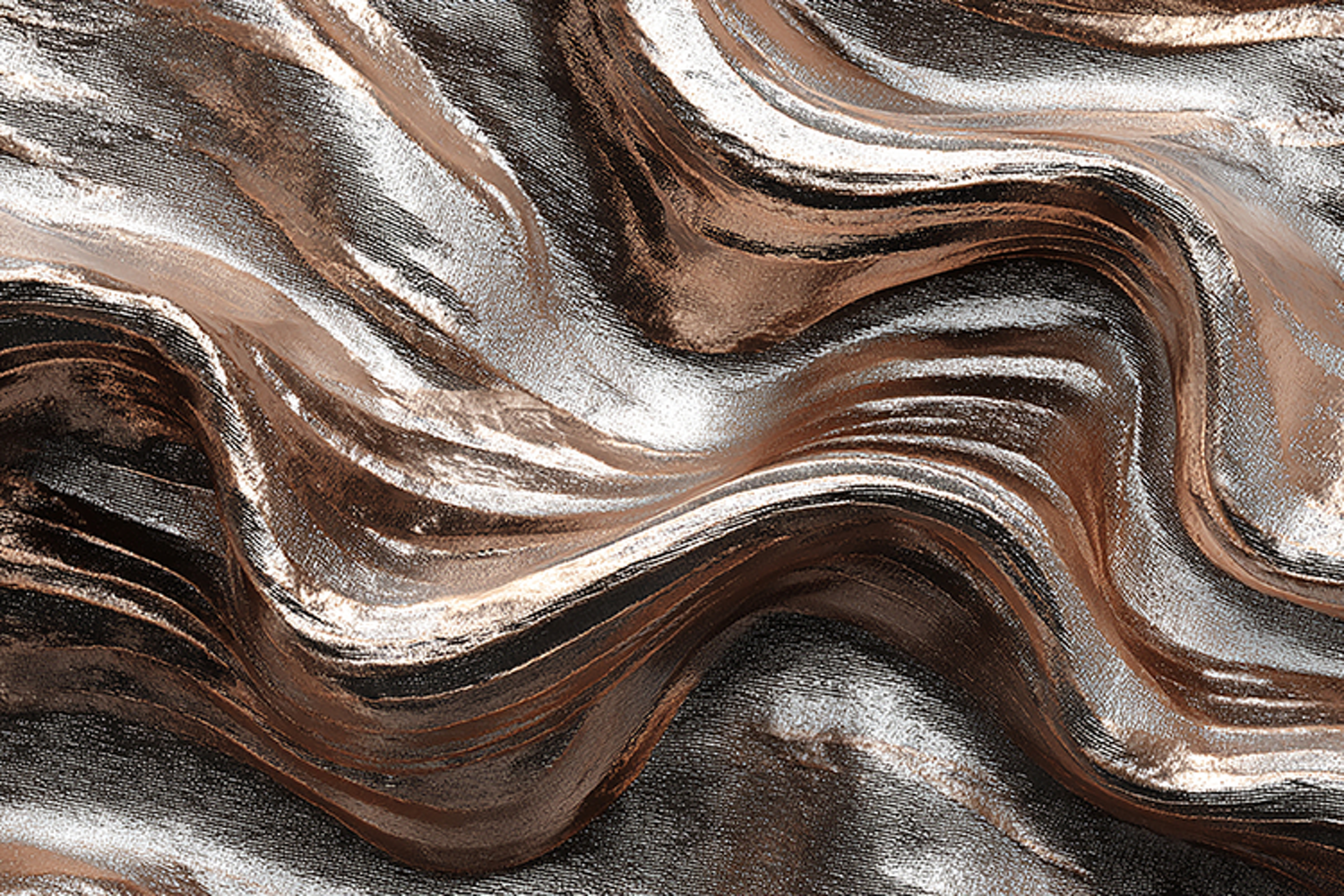 A metallic fabric with wavy patterns and shiny texture