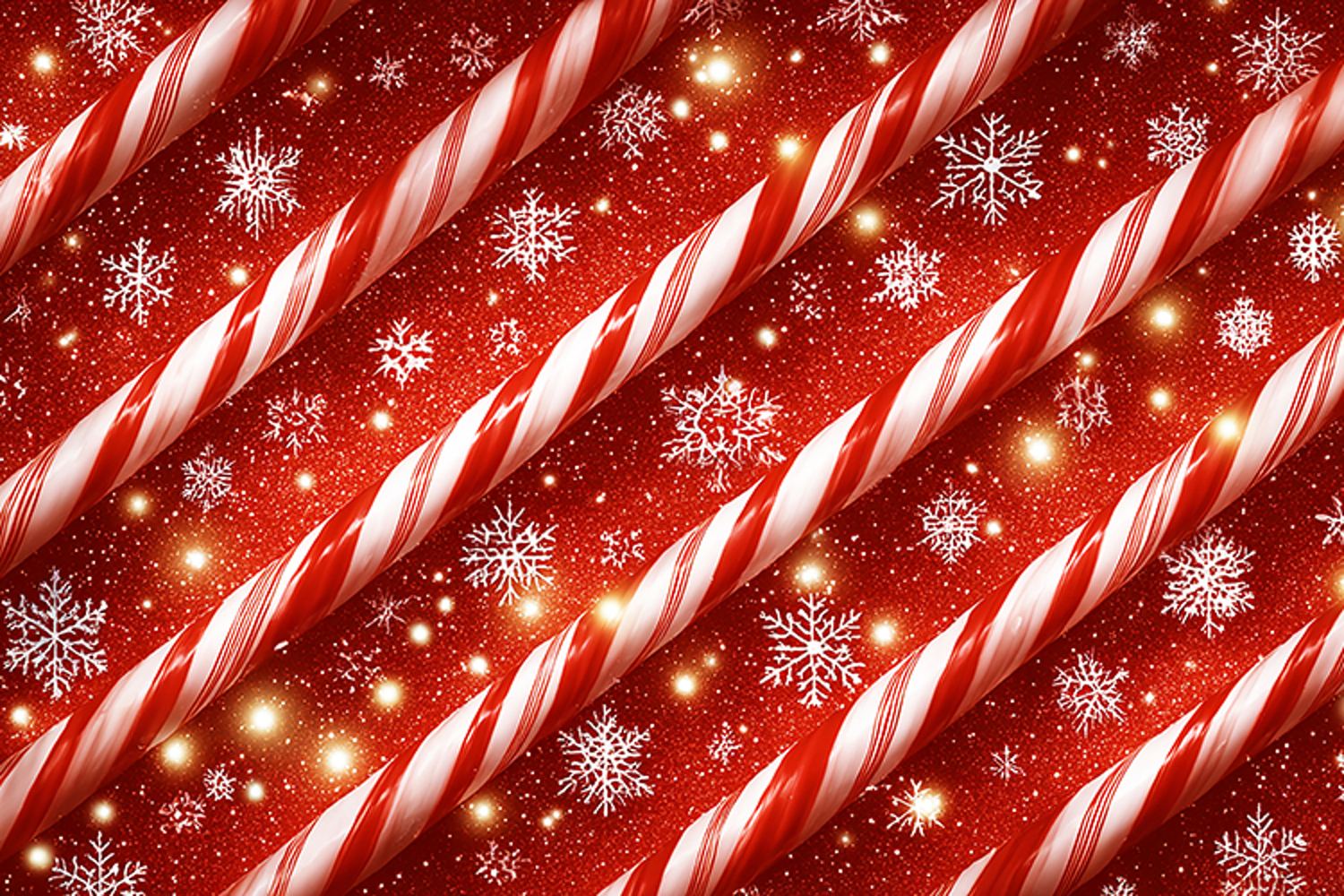 A festive and colorful arrangement of candy canes on a red background with snowflakes, evoking a sense of holiday cheer and celebration. The candy canes are striped with red and white, adding to the festive atmosphere.