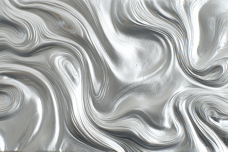 A metallic silver abstract background with wavy patterns