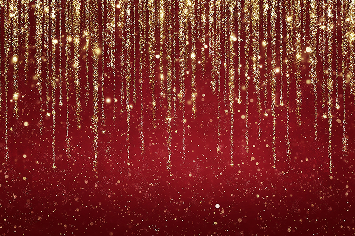 A high-quality image of a luxurious red background with gold glittering strings and sparkles falling down, perfect for use in designs and projects that require a touch of elegance and sophistication.