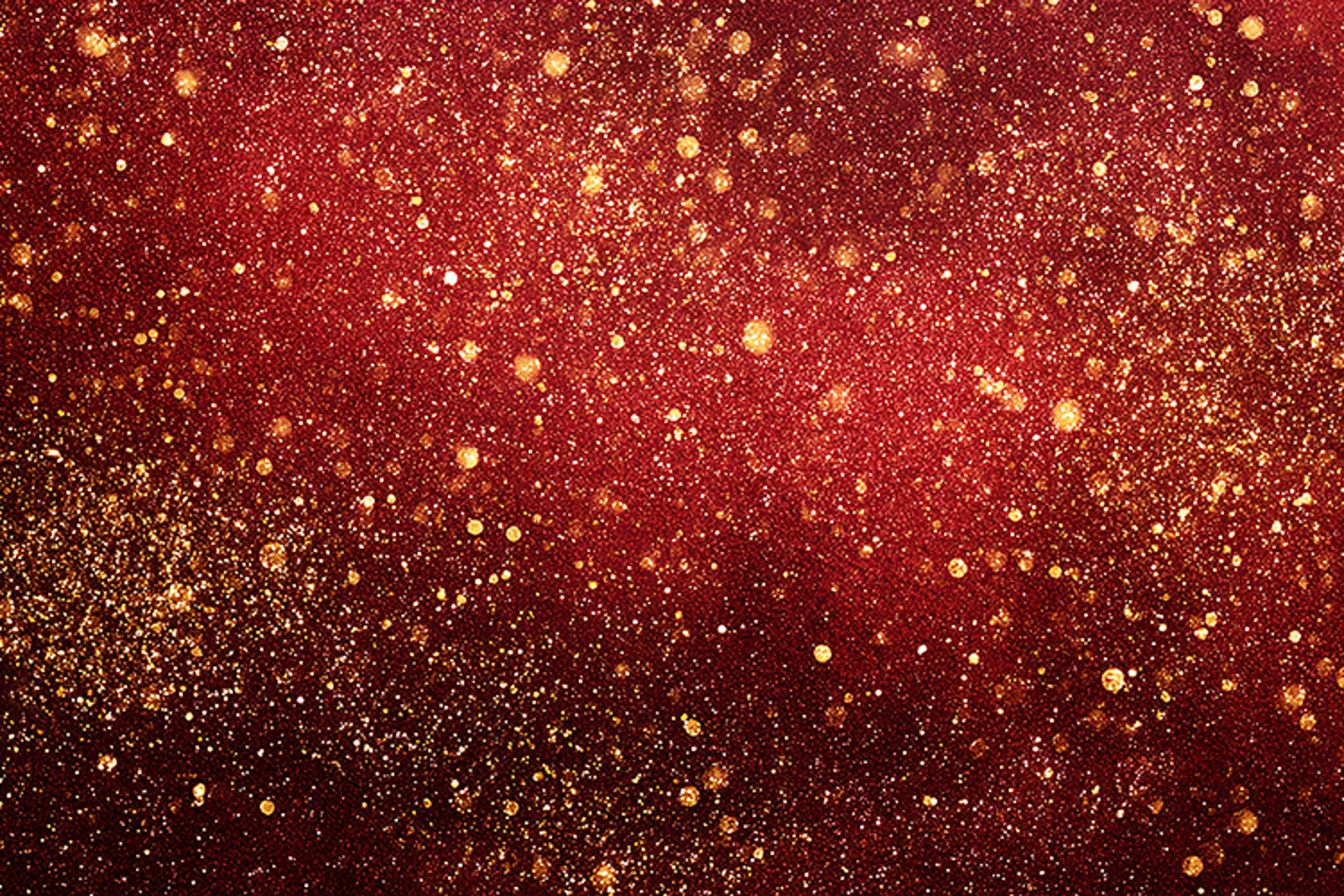 A vibrant red background with golden sparkles and glitter, perfect for use as a design element or background for festive and celebratory themes.