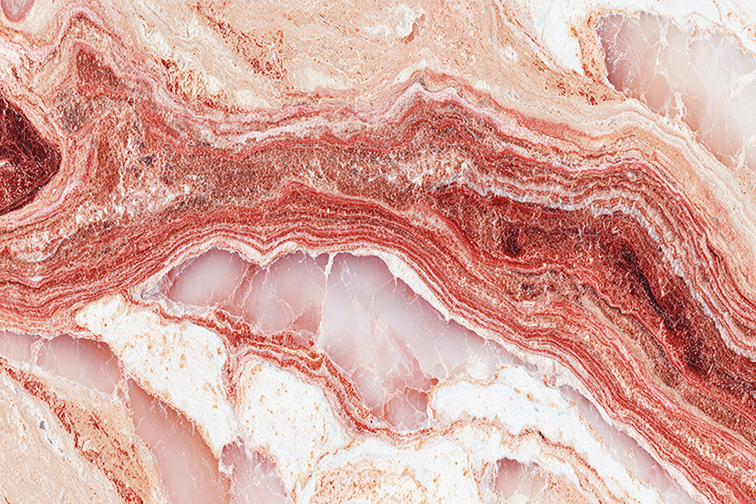 A vibrant red and white marble stone surface, showcasing its unique pattern and texture, perfect for interior design and architecture inspiration.