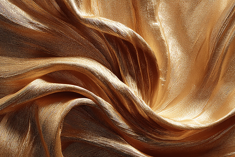 This image features a close-up view of luxurious golden fabric with smooth folds and texture, showcasing its elegant and modern design. The shiny, metallic material catches the light, creating a beautiful and artistic visual effect.