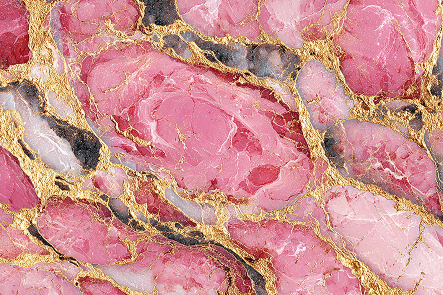 A vibrant pink marble texture with gold accents and black