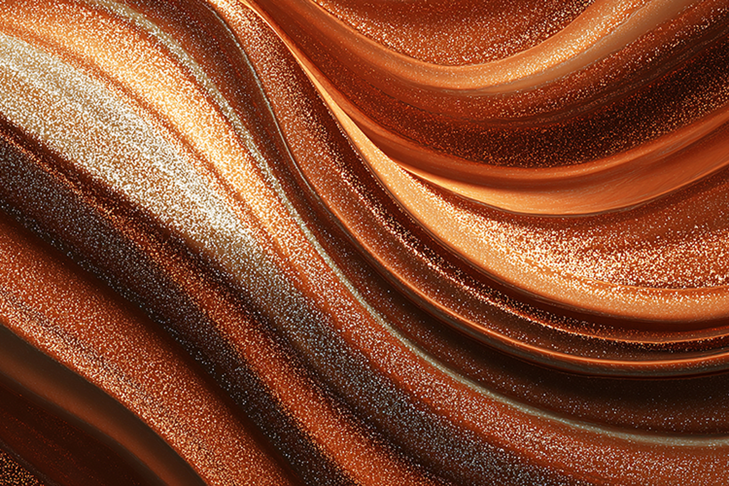 This image showcases a luxurious brown fabric with a metallic sheen, featuring a smooth and glossy texture. The fabric's wave-like folds create a sense of elegance and sophistication, making it perfect for design and fashion applications.
