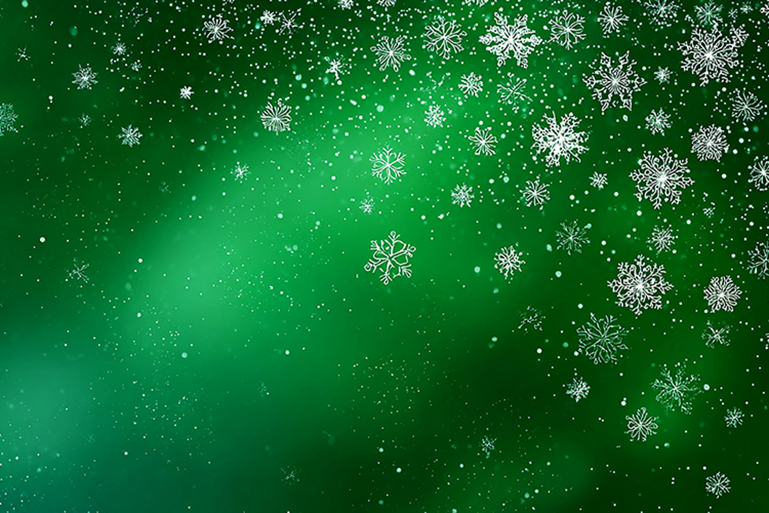 A stunning green background with snowflakes gently falling, evoking a sense of festive cheer and winter wonderland magic.
