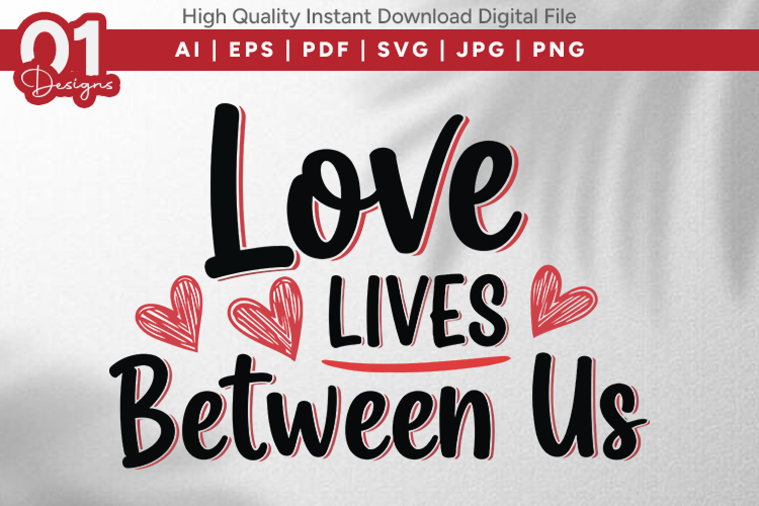 Love Lives Between Us Valentine Quotes SVG Design